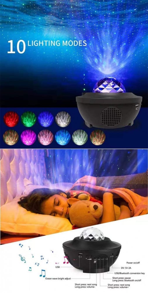 يعرض جهاز العرض الليلي على الفور النجوم اللامعة، مما يخلق إحساسًا رومانسيًا بالرفاهية.