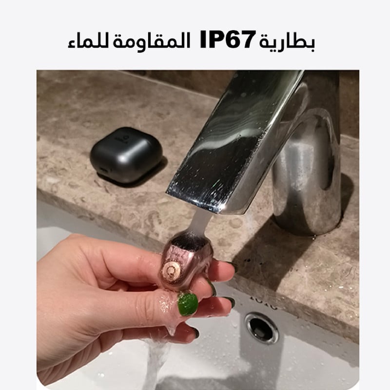 - بطارية عالية السعة تدوم حتى 15 يوم لاحتوائها على بطارية مدمجة بسعة 50 مملي امبير وبطارية بسعة 120 مملي امبير في العلبة لاعادة الشحن.