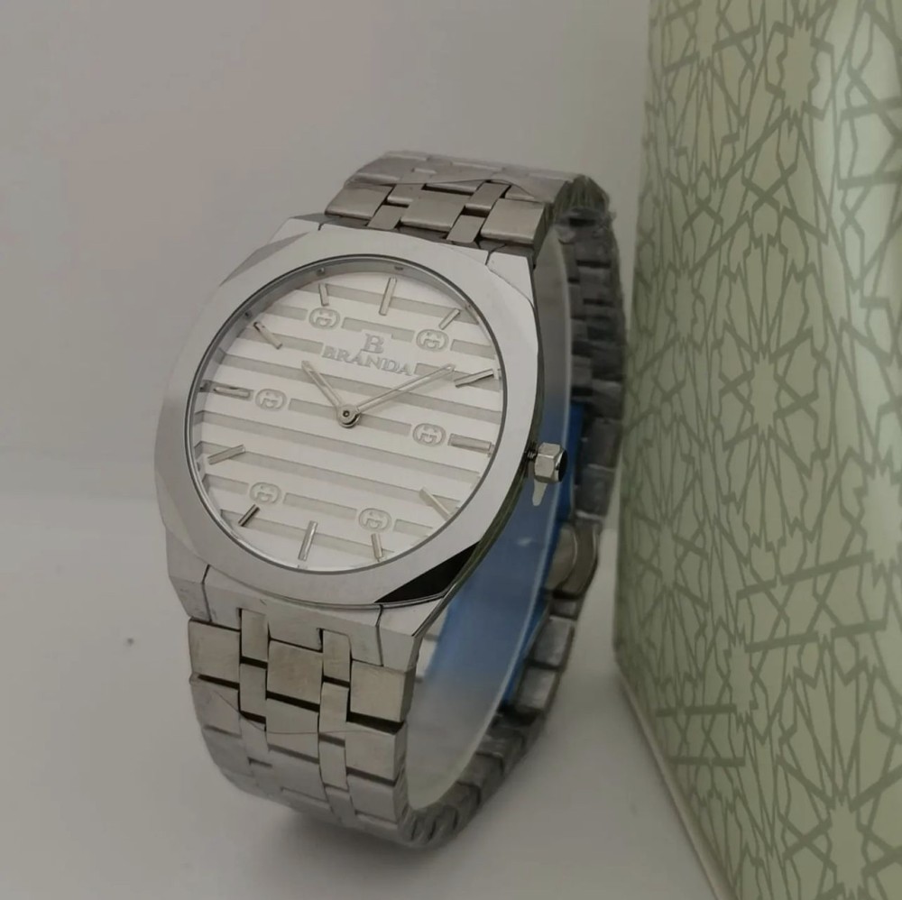 ساعة رجالية من ماركة UNIVERSE POINTبسير من الستانلس ستيل باللون الفضي ، ساعة بتصميم كلاسيك ،تتميز الساعة بالميناء الواسع باللون الابيض ، بلاشك ستكون هذه الساعة هي القطعة المناسبة لأرتدائها في كل الأوقات . المقاس:44 ضمان سنتين على اللون و ضد الماء .