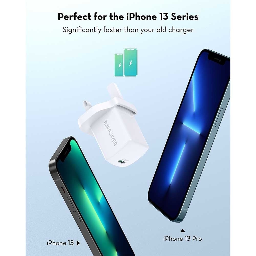 شاحن جداري من راف باور بقوة 20واط بمنفذ PD ( ابيض)