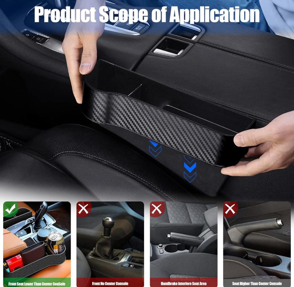 -توسيع المساحة: يمكنك وضع الهواتف النقالة والمشروبات والمفاتيح والبطاقات والسجائر ورخصة القيادة والنقد وغيرها من العناصر في صندوق مقعد السيارة. مريحة للغاية للاستخدام.
