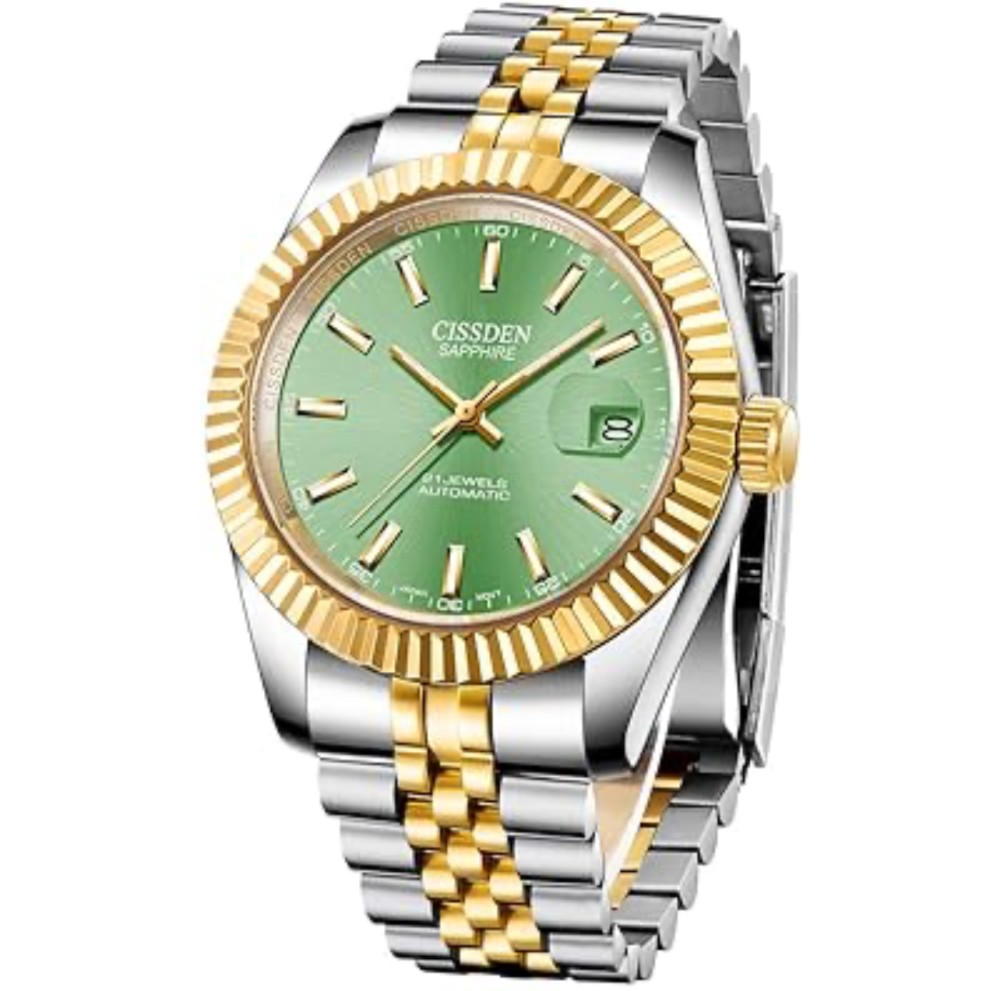 ساعة رجاليةمن ماركةSVENSTAR بسير من الستانلس ستيل باللون الفضي و الذهبي ، ساعة بتصميم كلاسيك ،تتميز الساعة بالميناء الواسع باللون الأخضر ، بلاشك ستكون هذه الساعة هي القطعة المناسبة لأرتدائها في كل الأوقات . المقاس:44 ضمان سنتين على اللون و ضد الماء .